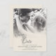 Couple mariage embrassant en carte Mariage monochrome sur lequel l'image, l'occasion, les noms, l'emplacement et la date peuvent être customisés dans le modèle.