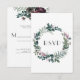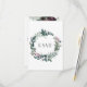 Couronne florale rustique avec des feuilles vert forêt foncé, des fougères et des tiges avec des reflets floraux en bourgogne. Le dos de la carte comporte un bouquet floral aquarellé en bourgogne, gris et vert forêt. Personnalisez avec vos propres informations.