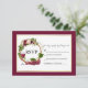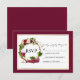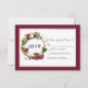 Carte de réponse de mariage avec couronne de bois et raisins aquarelle élégante moderne comprenant des roses burgondes, des roses roses, des roses rouges et de la verdure botanique. Fond burgonde avec cadre doré.