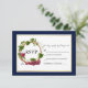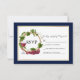 Carte RSVP de mariage avec couronne de vigne et raisins à l'aquarelle moderne élégante - Fond bleu marine et cadre doré