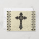 Cette carte de réponse comporte une photo d'une croix de fer forgé sur arrière - plan à motif vintage.