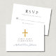 Carte de réponse croix religieuse bleu poussiéreux Garçon Première communion