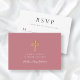 Carte RSVP de première communion de fille rose croisée religieuse