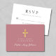 Carte RSVP de première communion de fille de croix religieuse rose Dusty