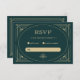 Ces cartes de réponse rsvp de mariage glamour présentent une touche moderne d'art déco classique. Un cadre géométrique et une ornementation colorés de champagne décorent un élégant arrière - plan vert émeraude pour un look de mariage spectaculaire et vintage.