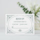 Ces cartes de réponse rsvp de mariage festif présentent une touche moderne d'art déco classique. Un cadre géométrique et ornementé vert orné décorent un élégant arrière - plan blanc/argent clair pour un look mariage de Noël spectaculaire et vintage.
