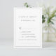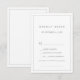 Cette carte de demande de chanson à la typographie argentée minimaliste est parfaite pour un mariage simple. Le design romantique moderne présente une typographie grise argentée et blanche classique. Personnalisable dans n'importe quelle couleur. Gardez le design simple et élégant, tel quel, ou personnalisez-le en ajoutant vos propres graphiques et illustrations. Créez votre liste d'invités de mariage et votre liste de chansons de piste de danse en même temps ! Cette carte de réponse de mariage demande commodément aux invités s'ils pourront assister à votre mariage, et quelle chanson les fera danser.