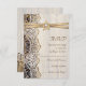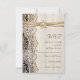 Elégante dentelle blanche, ruban et fleur sur le mariage en bois RSVP réponse/réponse carte avec dentelle blanche sur bois vieux brun avec deux rubans satinés croisés et fleur en beige avec brillance métallique et un bijou blanc. Texte en marron. Notez que la dentelle, le bois, la fleur et les bijoux sont tous "imprimés" et non pas de vrais tissus, bois, pierres précieuses ou cristal. Ce design élégant, chic et romantique, chic et chic, à l'essence rustique, fait partie d'un ensemble mariage et est parfait pour un mariage rustique chic ou pour un mariage occidental de printemps, d'été ou d'automne avec une palette de couleurs neutres.