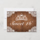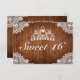 Sweet 16 carte RSVP. Style rustique avec planches en bois arrière - plan et décor en dentelle blanche. D'autres articles sont disponibles dans ce style dans notre magasin. Vous pouvez modifier la conception plus loin, modifier les couleurs, les polices et ajouter du texte en cliquant sur le lien "customiser plus loin".
