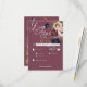 Offrez-vous le charme captivant de notre carte de réponse mariage bordeaux foncé et moody avec des options de dîner, où le raffinement rencontre le romantisme dans un mélange harmonieux de couleurs et d'élégance. Sur fond de Bourgogne riche, ce design donne un ton dramatique. Vos détails prennent le devant de la scène, entourés d'un luxuriant assortiment de pavots d'aquarelle, de zinnias et d'autres fleurs dans les tons bleu marine, bordeaux, roux doux et or, complétés par un feuillage vert sauge foncé. Chaque pétale et chaque feuille évoquent des récits de passion et d'enchantement, préparant le décor d'une fête aussi mémorable que magique. Créé par Simply Farmhouse Press.