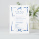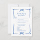 Carte RSVP de mariage moderne bleu français Doodle en ruban dessiné à la main. Tous les textes sont pré-arrangés pour que vous personnalisiez facilement et rapidement avec vos propres détails.
