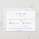 Doodle dessiné à la main, carte rsvp de mariage avec restriction de régime/note d'allergie. Typographie bleu français avec accents doodle et coordination du support motif rayé bleu clair.