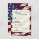 Carte RSVP de mariage avec le drapeau patriotique USA Drapeau représente le drapeau américain rouge, blanc et bleu Etoiles et bandes. Il comprend les acceptations, les déclins, le nombre de participants et les choix de repas.
