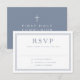 Dusty Blue Religious Cross Boy First Holy Communion RSVP Card.