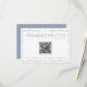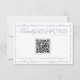 A classy and elegant calligraphy dusty blue and white retro old money wedding qr code rsvp card. That has a vintage and modern white background with blue script and hand written whimsical stylish wording and hand drawn branches. With customizable QR code on the center. Luxurious and chic with classic handwritten lettering. It is all editable by clicking on the personalize button.