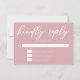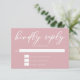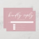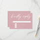 Cette carte rsvp de mariage rose rose poussiéreuse présente une délicate typographie blanche pour une cérémonie romantique d'après-midi pour une mariée féminine qui aime les couleurs douces et le design de script minimal. Rose pastel doux répondez gentiment aux cartes de réponse.