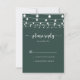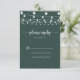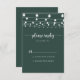 Ces cartes RSVP de calligraphie verte à cordes rustiques sont parfaites pour un mariage classique. Le design comprend de belles lampes à cordes peintes à la main dans un arrière - plan vert.