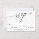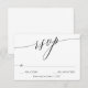 Carte RSVP de mariage dans un design minimaliste élégant combinant une écriture calligraphique avec des polices standards en noir et blanc.