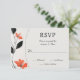Faites de votre mariage une planification transparente avec cette Elégance Florale Moderne avec la carte RSVP de mariage Bold Blooms. Doté d'un design époustouflant de fleurs rouges-orangées audacieuses et d'une typographie élégante, cette carte RSVP complète magnifiquement la faire-part de mariage correspondante. Conçu pour le style et la fonctionnalité, il offre suffisamment d'espace pour que les clients puissent confirmer leur présence et fournir des préférences de repas ou d'autres détails. Parfait pour les couples à la recherche d'une touche contemporaine mais élégante pour leur papeterie mariage.