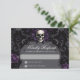 Obtenez votre réponse rapidement avec ce magnifique gothique Elégance Boho pourpre crâne crâne fleuri mariage RSVP design parfait pour votre événement important. Ce modèle facile à modifier dispose de texte de script personnalisé avec un arrière - plan damassé foncé magnifiquement détaillé.