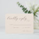This wedding RSVP card features a minimalist and elegant design with a soft beige background, creating a warm and inviting atmosphere. The layout includes a prominent cursive script for the phrase "kindly reply," paired with clean sans-serif fonts for clear readability. Customizable fields allow guests to indicate their attendance status and number of attendees, ensuring functionality without clutter. The overall style is sophisticated yet approachable, perfect for formal events that celebrate love and commitment.
