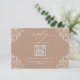 Cette carte rsvp de code QR beige / taupe présente une impression de couleur claire sur un arrière - plan beige / taupe. Des coins vintages élégants entourent votre code QR et le libellé de la carte de réponse / carte rsvp. Ces cartes rsvp sont pour vos invités à répondre en ligne. Consultez les produits correspondants de cette collection pour plus d'options.