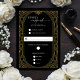 Elegant Black Faux Gold Art Deco Response Card. Make a sophisticated statement with this elegant Art Deco inspired response card. The striking contrast of deep black and luxurious faux gold creates a timeless appeal, perfect for formal events. Designed to impress your guests, this card features clear sections for their RSVP, entrée selection, and the number of guests attending, all framed by a beautiful, vintage-inspired geometric border. This response card is a chic way to gather essential details for your wedding ensuring a seamless planning process with a touch of glamour.
