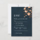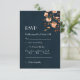 Cette simple carte de réponse mariage est si élégante, détails floraux minimes dans l'orange brûlé contraste magnifiquement avec le riche arrière - plan d'aquarelle marine foncé. Police san serif fine mais élégante sur la typographie blanche complète le design. Carte rsvp idéale pour un mariage de automne simple mais élégant. Le dos de la carte de réponse présente les initiales du marié et de la mariée dans la même élégante typographie.