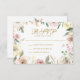 Elégantes pivoines roses et fleurs d'ivoire encadrent le haut et le bas de cette belle carte rsvp de mariage printanière. Les sprigs de feuilles verts sauge décorent au milieu de la palette de fleurs de pêche qui entourent le script d'or romantique. Un beau bouquet de diamant entoure les initiales du couple sur cette carte délicate de mariage de jardin.
