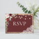 Moderne et branché, ce design rustique RSVP faire-part de mariage dispose d'un arrangement botanique botanique bordeaux floral aquarelle, lumières à cordes, faux dentelle Alencon française, avec une élégante boîte de texte bordeaux et blanc au-dessus d'un bois d'écorce miellé. Pour supprimer les choix de repas, nous avons créé une vidéo comment-to-to pour vous ici : https://youtu.be/ZGpeldQgxoE Partie d'une suite de mariages que nous espérons que vous aimez autant que nous : https://www.zazzle.com/store/elegant_invites_/gifts?cg=196508395413584683&pburl= Copyright Elegant Invitations, tous droits réservés.