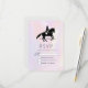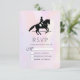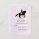 Carte RSVP avec illustration noir et blanc d'un coureur de dressage. Le cheval et le cavalier font une pirouette. Classique et beau. Placez-vous sur un arrière - plan d'aquarelle aux couleurs pastel délicates et feutrées.