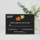 Cette élégante carte mariage de automne RSVP est parfaite pour un mariage d'automne moderne. Le design simple présente des feuilles d'érable avec une élégante typographie blanche et orange sur un arrière - plan noir.