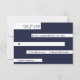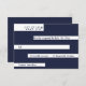 Cette élégante carte RSVP bleu marine et blanc est parfaite pour un mariage moderne. le design simple présente une élégante calligraphie bleue sur bandes blanches sur un arrière - plan bleu marine.
