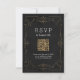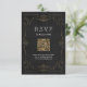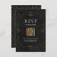 L'élégance vintage orne design de cadre tourbillon en or sur arrière - plan noir grunge. Motif Damas avec monogramme sur le dos, moderne, élégant et classe, parfait pour mariage vintage, mariage art déco toute l'année. Couleur arrière - plan modifiable pour correspondre aux couleurs de thème mariage. Personnalisez votre propre carte RSVP de code QR pour votre ensemble de faire-part de mariage. Voir toutes les pièces correspondantes dans cette collection "Gold Modern Classy mariage" ci-dessous.