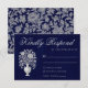 This design features navy blue heritage crest, delicate monogram initials, elegant script typography, a subtle luxury linen texture, with a detailed botanical leaf engraving pattern in silver on the backside of the card. Perfect for classic, royal-themed, old-money, and formal black-tie weddings. This product can be easily personalized. If you need help with the customization of the product or need matching products kindly please contact me via Zazzle.