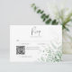 Élevez votre journée de mariage avec la beauté intemporelle de notre carte de réponse mariage verdoyante délicate avec un code QR. Contre un arrière - plan blanc immaculé, des tiges amples de fougères d'aquarelle verte molle grattent gracieusement le côté gauche, créant un exquis et élégant affichage de la grâce de la nature. Ce design saisit l'essence de l'élégance organique, promettant d'enchanter vos invités et de donner le ton parfait pour votre journée spéciale. Laissez votre histoire d'amour se dérouler au coeur de la luxuriante tranquillité des plus beaux de la nature. Créé par Simply Farmhouse Press, il fait partie de la collection mariage Elegant Delicate Greenery Ferns.