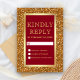 Elégante carte RSVP avec une fausse bordure en feuille d'or et un bel arrière - plan de parties scintillant en faux or.