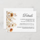 Ajoutez une touche d'élégance rustique à votre mariage avec notre carte de détails Mariage Fleur sauvage. Avec une belle gamme de fleurs sauvages peints à la main dans des couleurs vives, cette carte est le moyen idéal de fournir à vos invités toutes les informations essentielles sur votre journée spéciale. Le design floral délicat capte l'essence d'un jardin en pleine floraison, créant une esthétique charmante et accueillante.