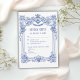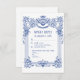 Elégant Floral Baroque Bleu Colonne Mariage Carte RSVP.