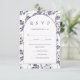 Une carte rsvp de mariage simple et élégante est dotée d'un beau motif botanique violet sur le dos, et d'une typographie rsvp audacieuse classique sur le devant blanc de la carte. Le choix du repas et la date de réponse sont inclus dans le texte modifiable.