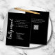 Cette Elégante Formal Bold Script Black White Wedding RSVP Card offre une belle calligraphie de script vertical, une typographie moderne, des sélections de menu personnalisables et un code QR pour les réponses en ligne. Le thème classique noir et blanc conviendra parfaitement aux mariages en toute saison.