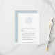 Carte RSVP pour mariage hivernal bleu glace avec exigences alimentaires. Design détaillé de flocon de neige bleu glacé avec élégante calligraphie. Customisez avec vos noms et vos informations mariages en calligraphie marine foncée et en lettres serif. Conçu pour correspondre à notre collection de mariage hivernal de flocon bleu glace.
