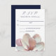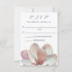 Elégante carte RSVP Magnolia rose et blanc de mariage conçue avec une douce fleur de magnolia rose et blanche sur un arrière - plan blanc. Le texte avant comprend : votre réponse par date et espace pour que les invités écrivent leur nom. Pour personnaliser, insérez simplement vos détails dans notre modèle, en remplaçant l'exemple de texte.