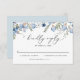 Cette élégante carte d'enceinte de la collection Pressed Florals présente des flancs d'aquarelle bleu poussiéreux aux délicates vignes verdoyantes, assortis à une police de caractères de script moderne. Parfait pour toute saison. Pour effectuer des modifications anticipées, sélectionnez Personnaliser -> Modifier à l'aide de l'outil de conception.