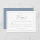 Cette élégante carte rsvp de mariage minimaliste bleu poussiéreux présente une crête monographique florale de style vintage sur le dos. Veuillez consulter la collection pour voir la suite d'invitation de monogramme mariage de crête bleu poussiéreux assortie, et d'autres produits correspondants.