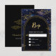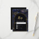 Donnez le ton à votre célébration céleste avec cette carte RSVP noire et mystique, élégante, aux accents de faux or luxueux. Conçue avec des motifs étoilés et un fond noir profond, cette carte capture l'esprit enchanteur d'une nuit sous les étoiles. Les détails en or éthérée apportent une touche magique et raffinée, ce qui en fait une parfaite combinaison pour un mariage plein de mystère, de romantisme et de charme cosmique. Une façon élégante de rassembler les réponses de vos invités avec élégance céleste.