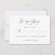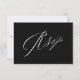 Cette carte RSVP mariage élégante dispose d'un script blanc qui dit "RSVP" sur un arrière - plan noir et sur le devant vos détails rsvp en script noir sur un arrière - plan blanc. Consultez notre boutique I Love Weddingz pour en savoir plus sur cette collection. Conçu par Susan Coffey.