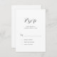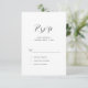 Elégante carte RSVP de mariage de script moderne. Le design est magnifique avec du noir et du texte au charbon de bois sur le blanc. Personnalisez avec votre date de réponse RSVP. Les couleurs de texte et d'arrière - plan avant et arrière sont entièrement personnalisables. Retour en blanc massif. Nous vous invitations à visiter notre magasin Zazzle, GJ Design Co, pour voir les produits correspondants et plus encore.