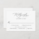 Conçue pour coordonner avec notre collection de mariage de script romantique, cette carte RSVP d'options de repas personnalisable, dispose d'un texte de script de calligraphie étendu jumelé à un serif élégant et une police sans caractère moderne en noir. Éléments correspondants disponibles.