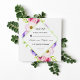 Mariage RSVP dans un thème floral avec des couleurs joliment élégantes et douces de violet, rose, blanc et vert, Simple mais élégant minimaliste cartes RSVP floral.